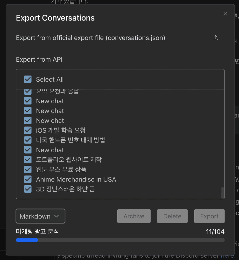 When using the ChatGPT app on Mac, you may notice the app slowing down over time. After searching the internet and exploring ChatGPT-related communities, I found that this slowdown occurs when a lot of conversation data accumulates or when there are multiple conversations. To delete unnecessary old conversations and back up important ones, I looked for some effective methods.