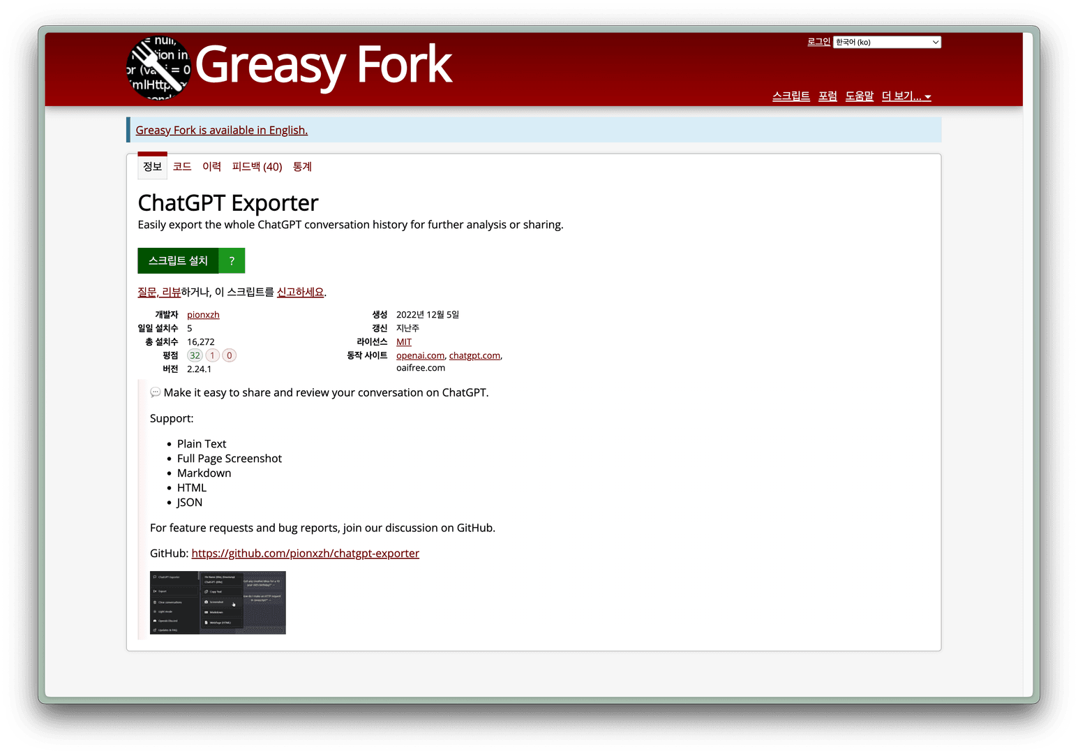- Install the ChatGPT Exporter script.