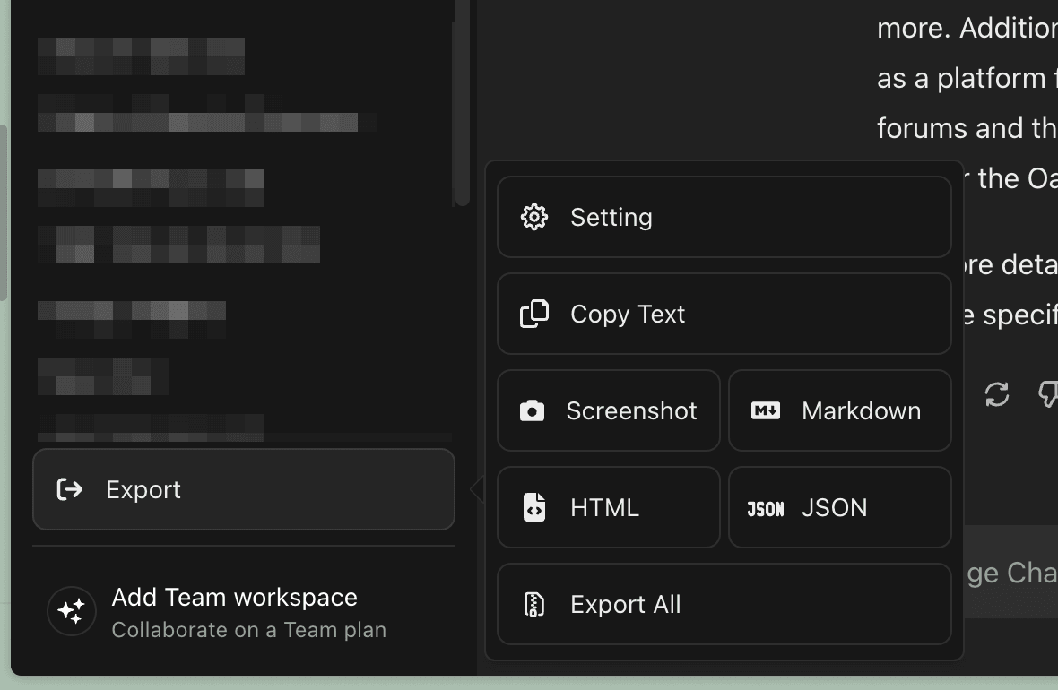 - Markdown: Backup conversations to Notion or Obsidian.
